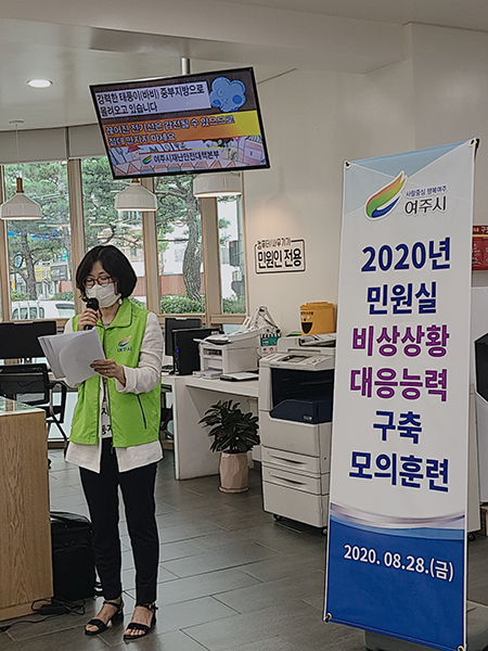 여주시 관계자는 “이번 모의훈련 실시는 단계별 대응방법을 사전 숙지해 실제 상황 발생 시 적극적인 현장대처가 용이하도록 하는 것이 목적이며, 증가하고 있는 민원인의 위법행위로부터 민원공무원과 주민을 보호하고, 민원공무원이 안심하고 일할 수 있는 근무환경을 조성할 수 있는 계기가 될 것”이라고 말했다.