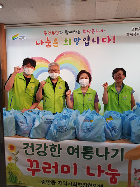 박은영 중앙동장은 “이번 여름에 비가 많이 내려 마음이 무거워진다.”며 “혼자 지낼 어르신들이 드시고 힘을 내시길 간절히 바라고, 앞으로도 소외된 이웃과 함께 나누고 꾸준한 사랑을 이어나가겠다.”고 전했다.