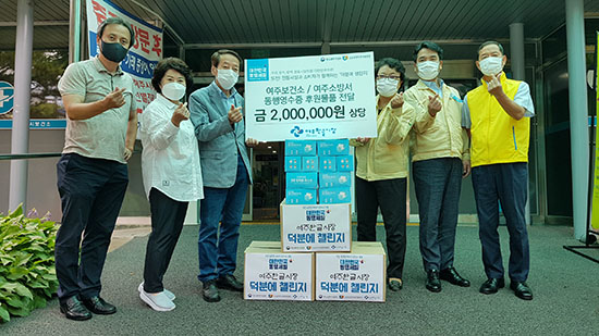 여주시 보건소(소장 함진경)는 지난 7월 23일 여주한글시장 상인회(회장 박홍수)관계자들이 참석한 가운데 전통시장과 소비자가 함께 사는 “덕분에 챌린지”를 통해 코로나19 예방을 위한 마스크 2,500장(약 2백만원 상당)을 보건소에 기증했다고 밝혔다.