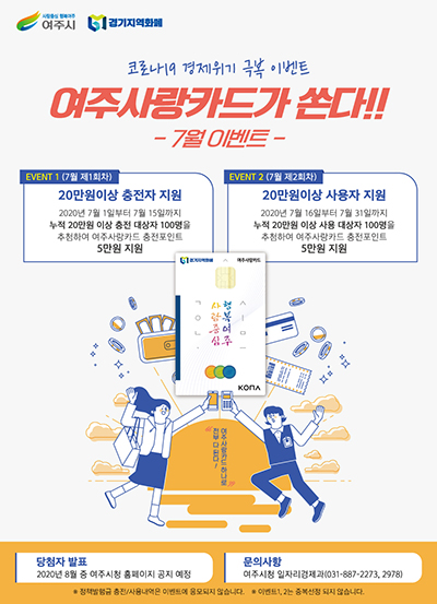 코로나19 경제위기 극복 “여주사랑카드가 쏜다~!!” 7월 이벤트 진행