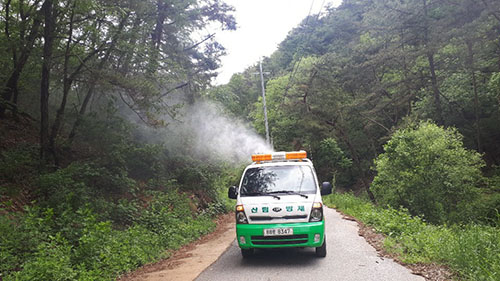 시는 지난 5월부터 산림병해충 예찰방제단 등의 전문 인력을 투입하여 산림 및 인접지역에 항공방제 및 지상방제 등 총 7번(100ha) 돌발병해충 방제를 실시했다.