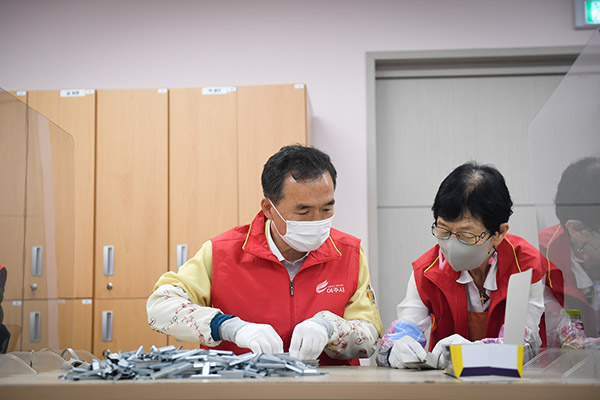 첫 번째로 찾아간 어르신공동작업장에서는 노인일자리 참여자들과 스테이플러 작업을 하며, 어르신들과 건의사항 또는 개선사항 등에 대하여 자유롭게 의견을 나누는 시간을 가졌으며 어르신들은 “노후에 참여할 수 있는 일자리가 있어 감사하고, 보람을 느낀다.”는 마음을 전달했다.