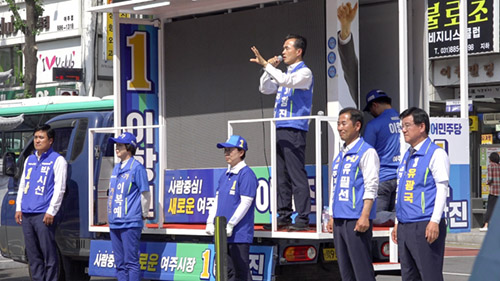 더불어민주당 이항진 여주시장 후보가 31일 여주시 중앙통 입구에서 출정식을 갖고, 반드시 확 달라진 새로운 여주를 만들겠다는 강한 자신감을 보였다.
