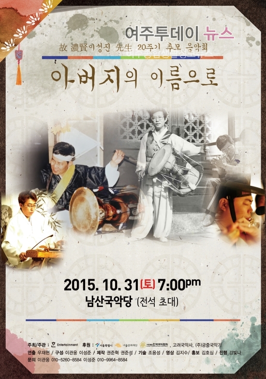 ‘아버지의 이름으로’란 주제로 열리는 이번 공연은 1960~1990년대 국악계를 풍미했던 이성진(1946-1995) 선생의 예술세계를 기리고자 하는 국악인들이 뜻을 모아 마련됐다.