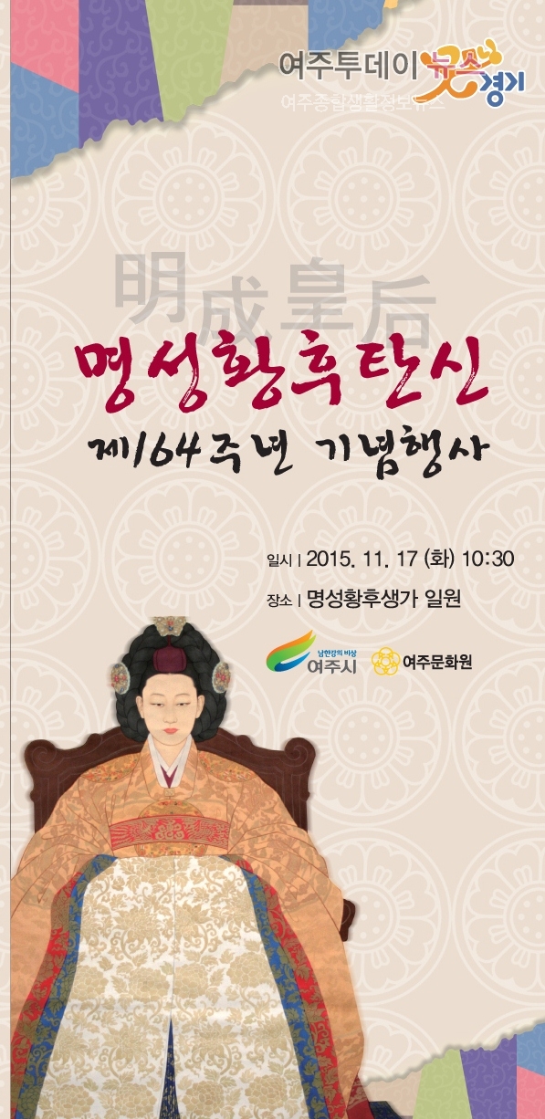 여주시(시장 원경희)와 여주시문화원(문화원장 김문영)에서는 명성황후 탄신 164돌을 맞아 11월 17일 명성황후 숭모제를 개최한다. 이날 행사는 여주시 능현동 명성황후 생가 기념관 앞 광장에서 오전 10시30분 작헌례를 시작으로 헌화와 분양, 기념식, 명성황후 뮤지컬 순으로 진행되며 기관단체장, 전주이씨 종중, 여흥민씨 종중, 지역주민, 관광객 등 500여명이 참석할 예정이다.공식행사 후에는 창작 뮤지컬 명성황후 「120년을 지켜온 나의불꽃 영원하리!」 가 오후 1시부터 문예관에서 공연된다.