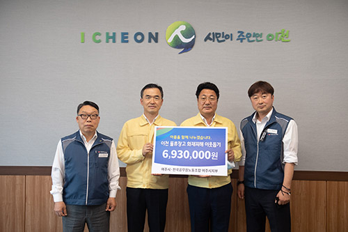 이항진 여주시장과 백광현 공무원노동조합 여주시지부장은 18일 이천시청을 방문해 직원들이 자율적으로 모금한 성금 6,930,000원을 엄태준 이천시장에게 전달했다.