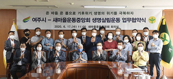 이항진 여주시장은 지난 6월 17일 새마을운동중앙회 2층 회의실에서 정성헌 새마을중앙회장을 비롯한 새마을중앙회 관계자와 고광만 여주시 새마을회장을 비롯한 여주시 새마을회 관계자 등 30명이 참석한 가운데 생명살림운동 업무 협약을 체결했다.