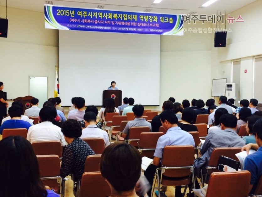 여주시지역사회복지협의체는 지난 23일 여주노인회관 2층에서 “여주시 사회복지 종사자 처우개선 및 지위향상 실태조사 결과보고”를 주제로 2015년 여주시지역사회복지협의체 워크숍을 개최했다.