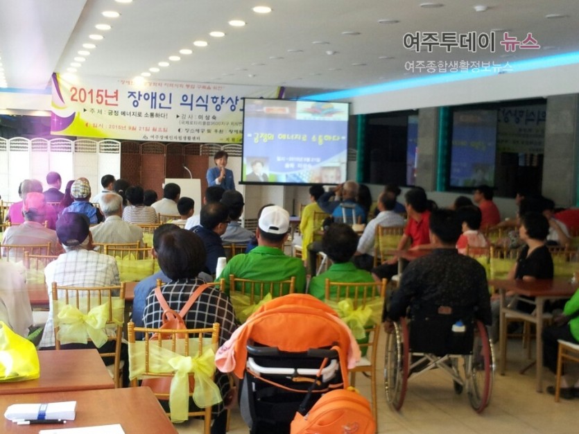 여주장애인자립생활센터(소장 유재원)는 지난 21일(월) 오학동 소재 황제웨딩홀에서 “2015 여주시 장애인 의식향상 교육”을 실시했다.