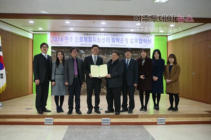 여주교육지원청(교육장 정종민)은 2월 26일 여주교육지원청에서 여주대학교 산학협력단(단장 조승제)과 2016년도 여주 진로체험지원센터 운영을 위한 MOU체결식을 가졌다.