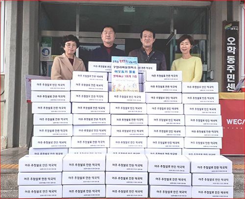 이에 김상희 오학동장은 “크고 작은 정성들을 모아 이웃들에게 전달하면서 어려운 이웃들이 생활에 불편이 없는지 꼼꼼히 살펴보고, 앞으로도 온정 넘치는 지역분위기 조성을 위해 노력하겠다”며 “동에서도 여러분의 정성담긴 물품을 어려운 이웃에게 마음을 담아 전달하겠다”며 감사를 전하였다.
