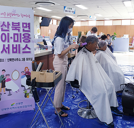 이번 봉사는 작년에 이어 올해 두 번째 진행하는 것으로 관내 수급자 및 취약 어르신들의 이·미용을 위해 실시되었으며, 산북면지역사회보장협의체 자원연계사업으로 추진됐다.