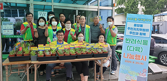 여주시 중앙동 주민자치위원회(위원장 정미정)은 지난 6월 25일 10시부터 여주5일 장터 인근 농협 하나로마트 앞에서 반려식물(다육) 나눔 행사를 실시했다.