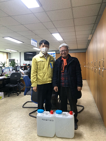 ㈜골드부르어스, 금사면에 코로나19 극복 위한 소독제 기탁