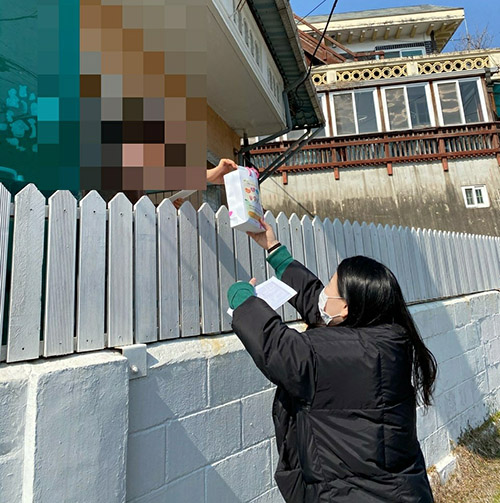 코로나 위기를 함께 넘자며 곳곳에서 기부해준 물품인 빵, 부각, 간편죽, 쌀과자 등을 현관 앞에서 전달하며 접촉을 최소화했으며, 코로나 예방수칙에 대한 안내를 제공했다.