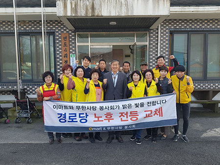 무한사랑봉사회(회장 송찬호)와 이마트 여주점은 지난 11일과 15일에 걸쳐 능서면 번도4리 경로당을 방문하여 노후전등을 LED전등으로 교체하고 점심식사를 대접하는 재능 기부 봉사를 실시했다.