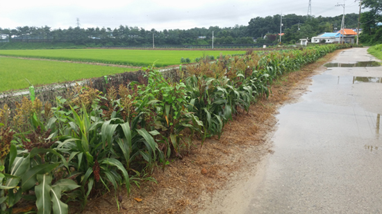 여주시 멱곡2통(통장 박두형) 주민 30여명이 올봄 도로변을 따라 심어놓은 수수가 무럭무럭 자라고 있어 마을 주민과 방문객에게 큰 호응을 얻고 있다.