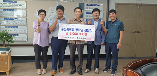 흥천장학회(회장 이인묵)는 2019년 8월 21일, 흥천면사무소에서 권병렬 면장을 비롯한 본 장학회 임원 등이 참석한 가운데 장학금 전달식을 가졌다.