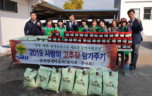 흥천면 새마을부녀회(회장 김명화)는 지난 5일 흥천면 행정복지센터에서 부녀회 임원 6명이 팔을 걷어붙이고 ‘사랑의 고추장 담그기’행사를 실시했다.