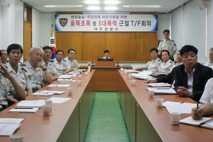 지난 9일 여주경찰서(서장 황성모)는 폭력으로부터 안전한 사회 구현을 위한 “골목 조폭 등 근절 특별계획”을 마련, 경청과 배려를 통한 주민 만족 치안을 구현하기 위해 T/F회의를 개최하는 등 오는 10월말까지 골목 조폭 등 5대폭력(조폭, 주취, 갈취, 성폭, 학교)에 대한 강력한 단속활동을 전개하겠다고 밝혔다.