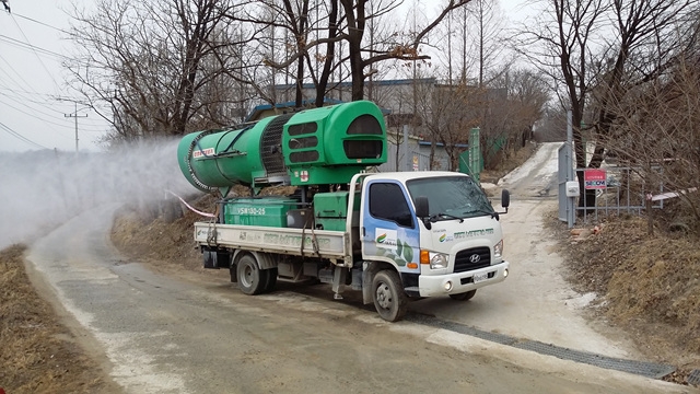 또한 지난달 15일부터는 하루도 빠지지 않고 광역방제기 2대를 동원해 구제역 발생지역 및 철새도래지 주변을 매일 소독하고 있으며, 구연산을 첨가한 유용미생물 2종을 관내 농가에 공급하고 있다.