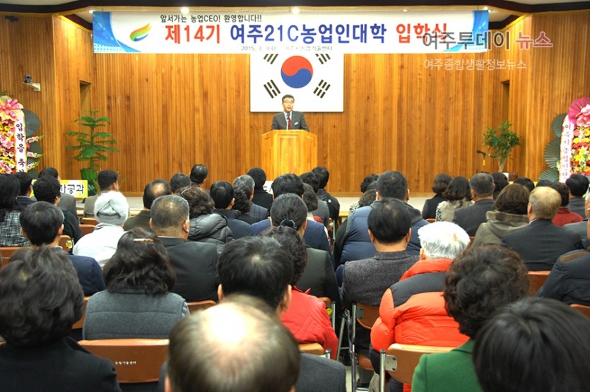 여주시농업기술센터(소장 이주현)에서는 3월 3일 “제 14기 여주21C농업인대학 입학식”을 입학생 114명과 원경희 여주시장, 이환설 여주시의회 의장을 비롯한 의원, 농업관련 기관장 및 단체장, 장용식 농업인대학 총동문회장 등 내빈이 참석한 가운데 성대하게 개최했다.