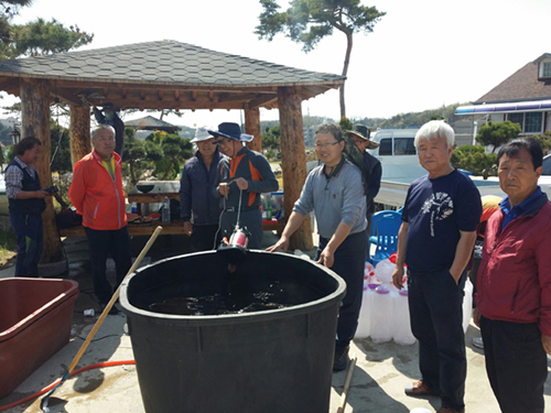 여주시농업기술센터(소장 김덕수)에서 집중 육성하고 있는 여주지구 벼 GAP 단지(회장 이병영)는 본격적인 영농철을 앞둔 4월 19일, 11개 마을 대표들과 함께 여흥동 단현통 이병영 회장 농장에서 벼 못자리에서 많이 발생하는 뜸묘·잘록병 예방을 위한 아인산염 제조방법 시연회를 개최했다.