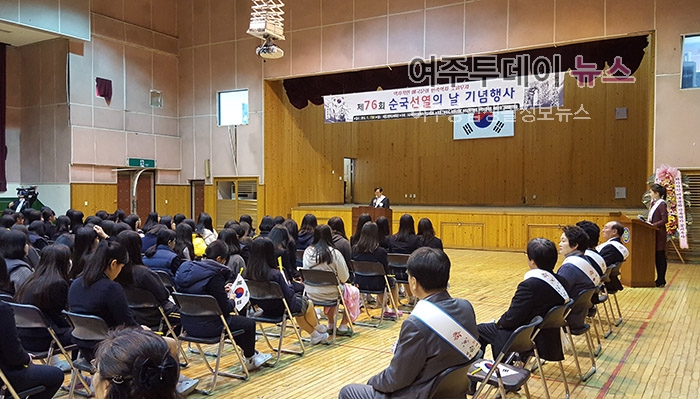 (사)여주시 독립운동가 기념사업회(회장 박근출)는 지난 11월 17일 세종고등학교 대강당에서 독립애국지사 후손과 독립운동가 기념사업회 회원 및 여주여중 학생 등 약 300여명이 참석한 가운데 제76회 순국선열의 날 기념식을 개최했다.