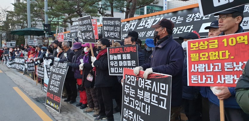 이날 집회에서 강천면 주민들은 “매일 250t의 쓰레기를 태우고 5t 트럭 50여 대가 쓰레기를 강천면을 가져와 폐기물소각장(SRF 발전소)에서 처리해 다이옥신과 중금속, 미세먼지, 악취를 뿌리는 열병합발전시설을 결사 반대한다”라고 외쳤다.