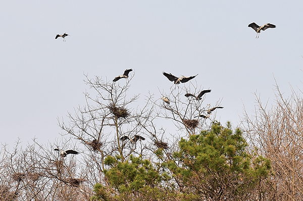 생명 탄생의 힘찬 기운이 솟아나는 봄날에 경기도 여주시 북내면 신접리에서는 천연기념물 제209호로 지정된 백로과 왜가리 100여 마리가 번식을 위한 힘찬 몸부림을 하고 있다.