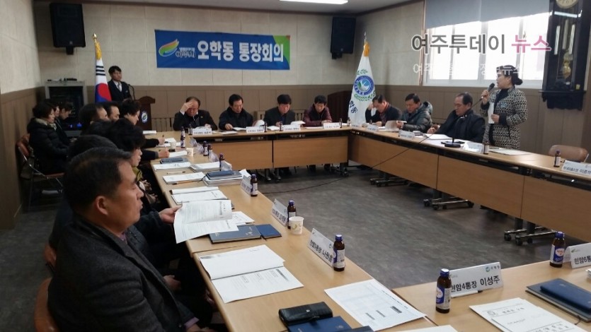 여주시(시장:원경희) 오학동은 지난 1월 7일(목) 오학동 주민센터 회의실에서 오학동장 간경숙, 여주시의회 부의장 김영자 의원, 이항진 의원을 비롯하여 17개통 통장 및 유관기관의 장 30여명 참석한 가운데 2016년 첫 통장회의를 개최했다.
