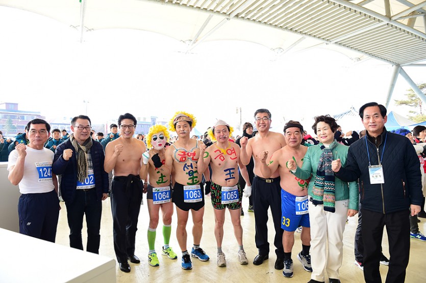 이날 원경희 여주시장은 환영사를 갈음하여 정병국 국회의원과 함께 탈의하며 참가자들과 함께하는 모습을 보여줘 환호를 이끌어냈다.