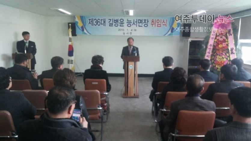 지난 1월 1일 여주시 인사발령에 따라 능서면장으로 취임한 길병윤 면장을 맞이하여 4일 11시경 능서면사무소 회의실에서 관내 기관·단체장, 27개리 이장, 동료직원 등 100여명이 참석한 가운데 제36대 능서면장의 취임식을 가졌다.